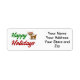 Label with happy holidays in 3D green and red text and a reindeer. Customize this with your own address and use to send out Christmas cards and gifts. Three label sizes to choose from.
