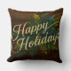 Happy Holidays Rustic Wooden Boards Painted Blue Throw Pillow