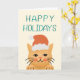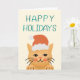 This holiday greeting card features an adorable illustration of a cat wearing a Santa hat along with the words Happy Holidays and a heartfelt message on the inside.