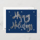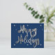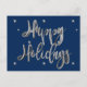 Happy Holidays Script Chic Blue and Silver Grey Holiday Postcard