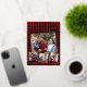 Rustic chic calligraphy on lumberjack pattern, family photo collage Christmas postcard. Easy to personalize with your details. PLEASE NOTE: For assistance on orders, shipping, product information, etc., contact Zazzle Customer Care directly.