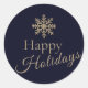 Add a touch of elegance to your holiday mailings and packages with this beautiful round sticker. The deep navy blue background is adorned with a brushed gold snowflake at the top, symbolizing the serene beauty of the season. Beneath it, "Happy Holidays" is elegantly presented in classic typography and script, capturing the spirit of tranquillity and goodwill. Perfect for adding a heartfelt touch to your festive greetings, these stickers are a charming way to spread joy and warmth this holiday season. Use them to seal envelopes, decorate gift wrap, or adorn holiday favours. Elevate your holiday presentation with this captivating and meaningful design.