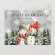 Make a stunning statement this holiday season with this cute holiday postcard featuring two watercolor snowmen with hats and scarves.