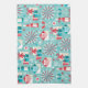 Happy Holidays Teal Blue and Red Pattern Kitchen Towel
