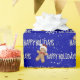 White HAPPY HOLIDAYS text with gingerbread men and snowflakes on a bright blue background.
