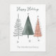 Make a lasting impression this holiday season with our custom holiday cards, a perfect blend of warmth and branding. Thoughtfully designed, these cards feature a charming watercolor illustration of three muted Christmas trees, accentuated by the words "Happy Holidays" in elegant script typography. Your business name is displayed in a clean, modern sans serif font for a professional touch.