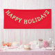 A simple typographical design with Happy Holidays in white curved lettering with a green shadow behind on a Christmassy red background.