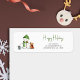 Simple and cute Happy Holidays return address label with an illustration of a cute snowman and some animals. Perfect complement for your Christmas stationery. Illustrated and designed by Patricia Alvarez.