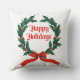 Happy Holidays Vintage Holly Christmas Wreath Throw Pillow