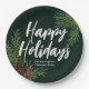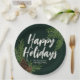 Happy Holidays Winter Pine Greenery Green Paper Plate
