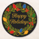 Happy Holidays Wreath Christmas Lights and Holly Round Paper Coaster
