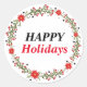 Happy Holidays wreath with flowers christmas Classic Round Sticker