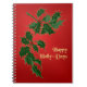 Bright, vibrant red Christmas Notebook with Holly Leaves, Berries, and the words "Happy Holly-Days."