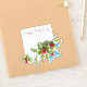 Jolly and vibrant spray of red and green holly and delicate sky blue forget-me-nots with editable text fields on square label with complementary green border.