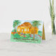 A happy home anniversary card from a realtor decorated with an elegant home in a southern coastal region with colourful flowers in the front yard and palm trees hand painted with watercolor. The inside has a coordinating warm shade of golden yellow and you can customize the text to fit your needs.