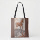 happy horse in brown tote bag