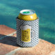 Keep your beer cold with the pop art inspired funny beer can cooler. Perfect for bachelor parties, tailgate parties, barbeques and picnics. Also makes great party favours. Humourous text with beer mug says: Why Limit Happy To An Hour?