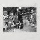 Happy Hour invitation with vintage bar photo on the front and custom text on back. Fun black and white photo of men in a bar or liquor shop with kegs and wall of bottles, possibly from the 1930s. Happy hour in kitschy retro hipster style!