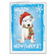 Send Christmas greetings with this card of a cute Dogo Argentino puppy wearing a Santa hat and striped scarf amid snowflakes and the words, Happy Howlidays! Great for Dogo-loving family and friends. Have a Happy Howliday!