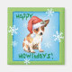 Celebrate the holiday season with a cute little Chihuahua puppy wearing a Santa hat amid snowflakes and the words, Happy Howlidays! Great holiday gift idea for Chihuahua-loving family and friends.