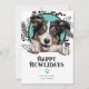 Happy Howlidays Collie Sheepdog Pet Dog Christmas Holiday card from Ricaso - designed with a wonderful typography Happy Howlidays text to the front - a fun dog themed holiday card, your furry family member deserves to send out his own holiday greetings .. easy to add your own text and photo - featuring a fun and bold paw print pattern to the back