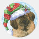 Celebrate the holiday season with a cute Leonberger puppy wearing a stocking hat amid a bunch of snowflakes. Great holiday gift idea for Leo-loving family and friends.