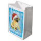 Celebrate the holiday season with a present in this cute gift bag decorated with a cute Mastiff puppy wearing a Santa hat amid snowflakes and the words, Happy Howlidays! Great holiday gift idea for Mastiff-loving family and friends.