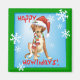 Celebrate the holiday season with a cute Saluki puppy wearing a Santa hat and scarf amid snowflakes and the words, Happy Howlidays! Great holiday gift idea for Saluki-loving family and friends.