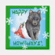 Celebrate the holiday season with a cute Schipperke puppy sitting in a Santa hat amid snowflakes and the words, Happy Howlidays! Great holiday gift idea for Schipperke-loving family and friends.