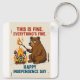This humourous design features a distressed bear attempting to roast a marshmallow on a bonfire fuelled by fireworks, with the caption "THIS IS FINE. EVERYTHING'S FINE." Below, "HAPPY INDEPENDENCE DAY" adds a touch of ironic celebration. This graphic is perfect for those who enjoy a playful take on holiday mishaps.