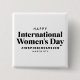 March 8th is International Women's Day button. Black and white button to celebrate women's equality with hashtag #InspireInclusion.