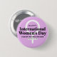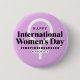 March 8th is International Women's Day button. Black and white coloured button to celebrate women's equality with hashtag #InspireInclusion.