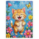 Bring a burst of cheer to your life with this heartwarming illustration of a laughing orange kitten surrounded by vibrant garden flowers and a fluttering yellow butterfly. Set against a dreamy blue sky, this playful and whimsical art piece radiates joy, innocence, and the magic of spring. The fluffy tabby kitten, with its expressive eyes and beaming smile, is featured in a bright, cheerful style that will melt hearts and lift spirits instantly.
