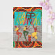Happy Kwanzaa paper greeting card with an illustration of dancing people with a drummer and colourful patterns. A bright and colourful illustration with African inspired patterns and joyful message. Add your own message inside if desired. Art, image, and verse copyright © Shoaff Ballanger Studios, 2022.