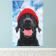 Happy Labrador in a Red Beanie Under a Blue Sky Canvas Print