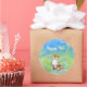 These whimsical stickers feature an image of a smiling brown fox crowned with flowers, obviously in a serene, joyful mood. The background colours of blue and green have been used in a swirled design.