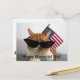 Célébrez le Memorial Day avec cette carte postale patriotique de ma collection "Kitty Koolness", avec un chat orange et blanc aux tons noirs avec un drapeau américain derrière elle. Photo du designer.