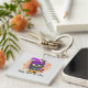 This adorable Halloween keychain features a black cat wearing a purple witch hat alongside the playful phrase “Happy Meow-o-ween.” Perfect for cat lovers and fans of spooky season with a cute twist, this whimsical design blends Halloween magic with feline charm for a fun, festive vibe.