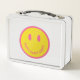 This is a standard metal lunchbox that appears to work just fine. We designed this box ourselves with an uploaded photo and custom text on the front and back. It looks absolutely beautiful except the front of the lunchbox is not centered like it shows in the photo. The print borders don't align with the inset flat part of the box where the preview photo online showed it perfectly centered in there. The back looks nice and centered though.