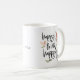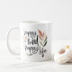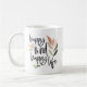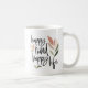 Uplifting words whilst enjoying your cuppa with this feminine design with simplistic pastel coloured leaves and stylish black typography quote Happy Mind Happy Life. Easily personalise with your name.