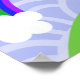 The bright colours from the rainbow and the whimsical blue waves in the background seem to echo this cute little blue monster's happy mood.