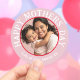 Add a sweet and stylish finishing touch to your gifts with this charming Mother’s Day photo sticker. Designed in a circular format, it features a central photo template framed with a thin red border, surrounded by a soft pink edge for a warm, retro-inspired look. Elegant white text reads “Happy Mother’s Day”, with space to add your name for a personal touch. Perfect for sealing envelopes, decorating gift wrap, favor bags, boxes, or cards, this customizable sticker turns any present into a thoughtful keepsake Mom will love.