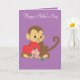The premier place for Mother's Day greeting cards is Miss Rhoadie. Displaying a purple background with a "Happy Mother's Day" salutation there is a baby monkey on the front holding a bouquet of flowers. Add to your shopping cart today!