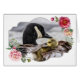 A sweet image of a Canadian Goose mom protecting her youngster in the rain. Set off by a flowered border.