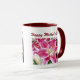 Great gift for Mother's Day is this mug featuring a closeup of a magenta stargazer Lily flower taken from a boquet.
