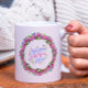 A light pink Coffee Mug with a rose floral wreath wishing your mother a Happy Mother's Day!