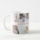 This 8 photo collage mug features 2 square photos and the remaining 6 horizontal photos. Happy Mother's Day is in pink across the middle and you can personalize a message across the middle.