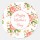 Small round happy Mother's Day sticker is shown with a lovely floral print.
