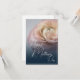 Close-up of pink rose on blue background and Mother's Day greetings. The rest of the card is free to design.