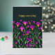 Simple watercolor card with magenta forget me not flowers and a dark green background. Happy nana's day Simple forget me not flowers Foil Holiday Card